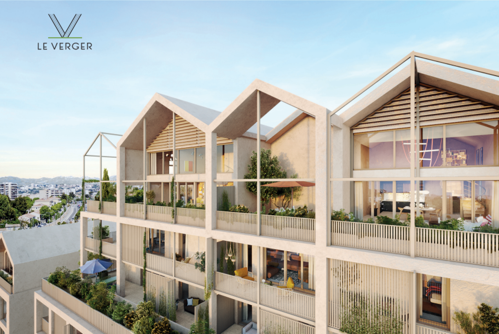 Le Verger : le nouveau poumon vert du 9ème labelisé NF Habitat et « E+ C- » En plein cœur du nouveau quartier de Vallon Regny, à mi-chemin entre le centre-ville et le Parc National des Calanques, découvrez prochainement la toute nouvelle résidence de standing LeVerger et ses 49 appartements allant du studio au 5 pièces duplex.