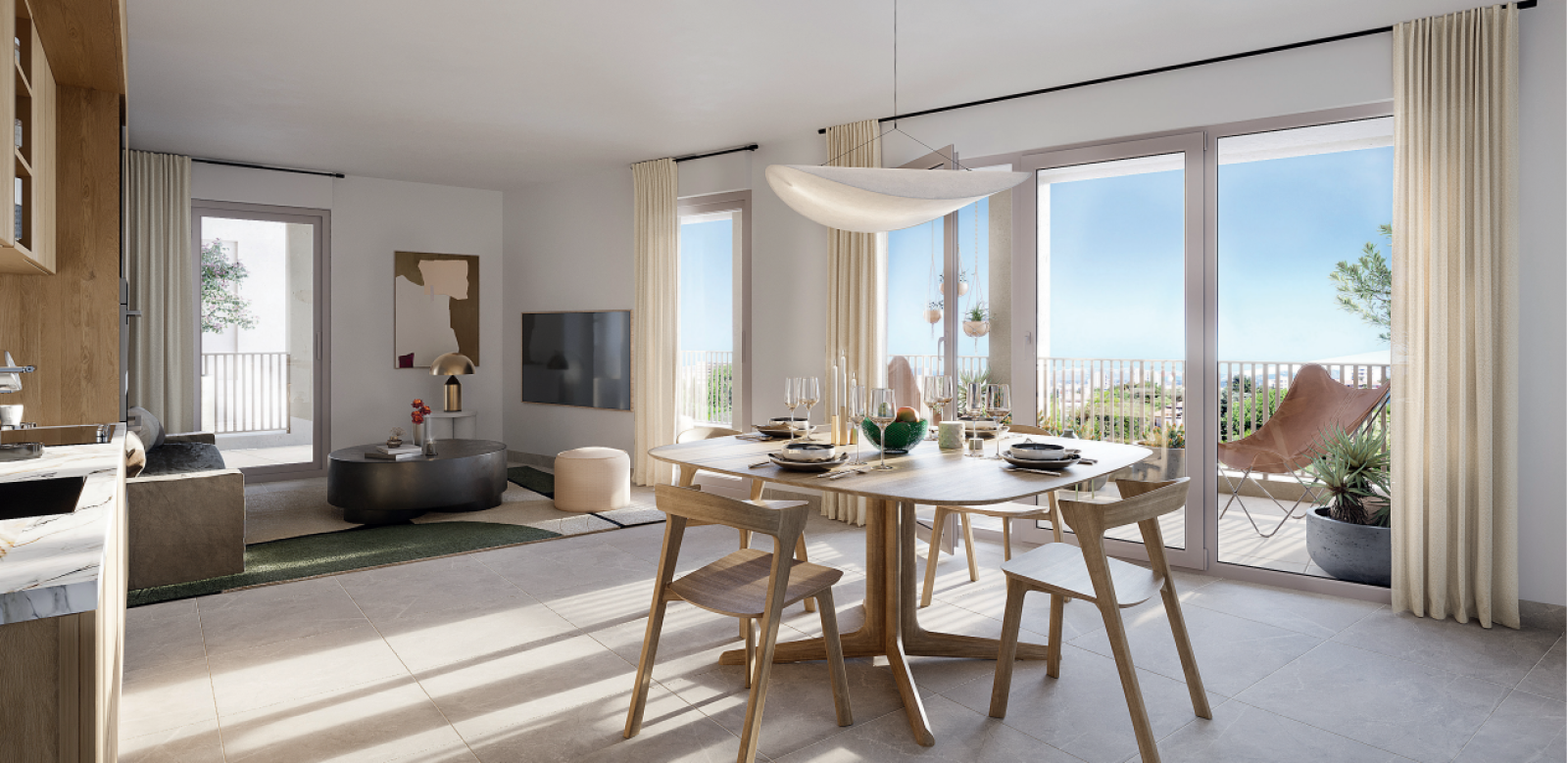 Les vastes appartements vous offrent une double exposition pour garantir une luminosité maximale toute au long de l’année ; chacun s’ouvre sur de vastes terrasses (en moyenne de plus de 30 m2) et offre des vues dégagées avec pour certaines, un horizon sur Notre-Dame-de-la-Garde, la Méditerranée et les Calanques.
