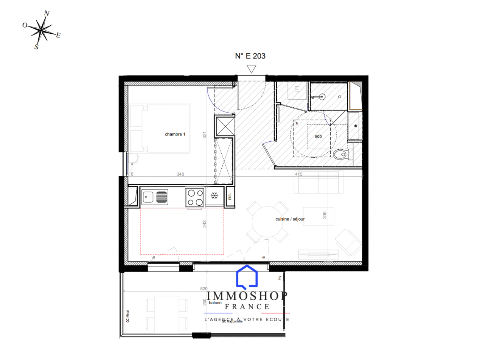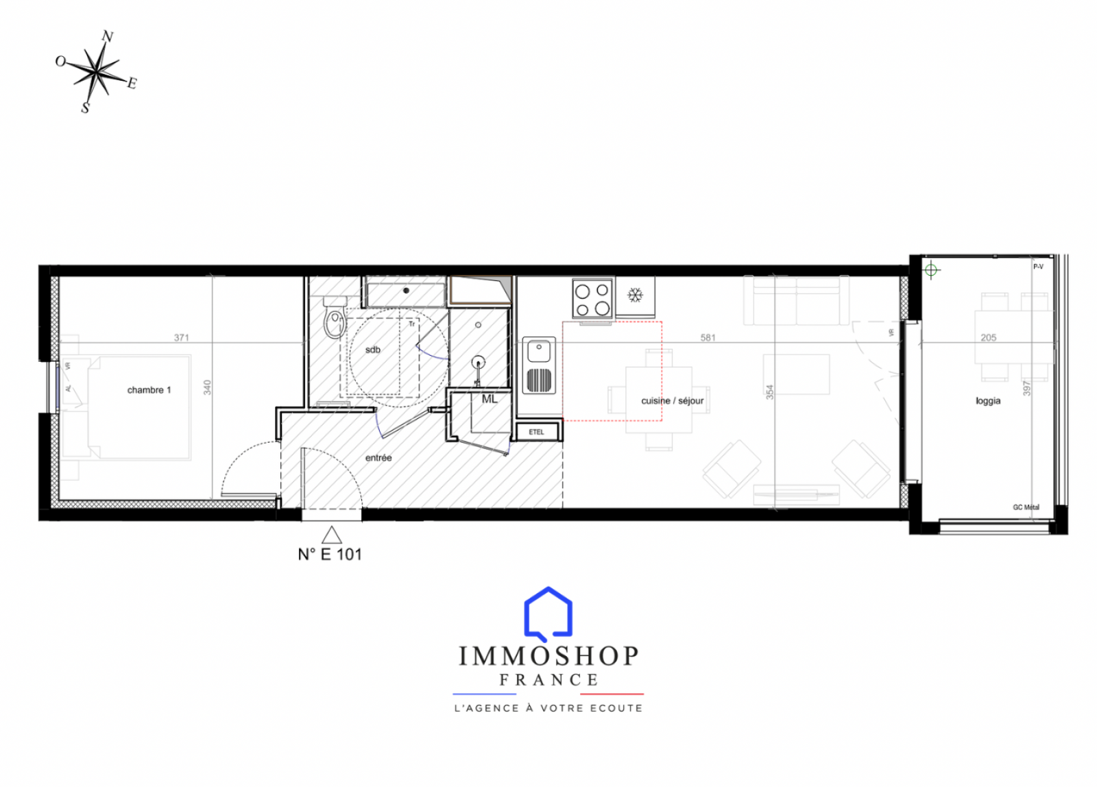 APPARTEMENT T2 43,09 m2 TRAVERSANT