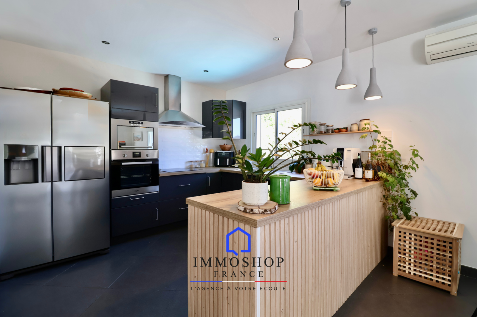 Cette maison T4 de plain-pied se compose tout d'abord d'un spacieux salon-séjour dans lequel vous retrouverez une cuisine ouverte entièrement équipée, d'un vaste cellier de rangement et d'un coin salle à manger ; le tout donnant accès à la terrasse extèrieure exposée plein Sud.