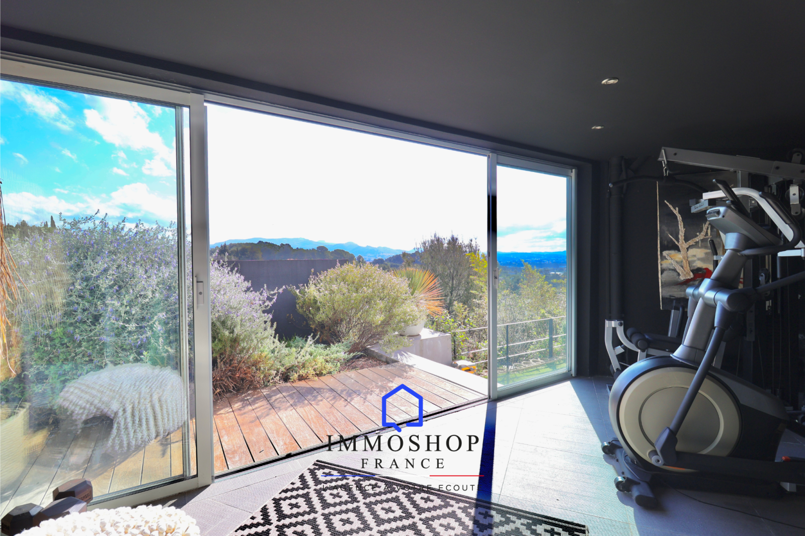 Enfin, au niveau inférieur se trouvent : une élégante cave à vin, un salon/salle cinéma, une spacieuse buanderie, une suite indépendante, une salle de sport et un local technique et de rangement.