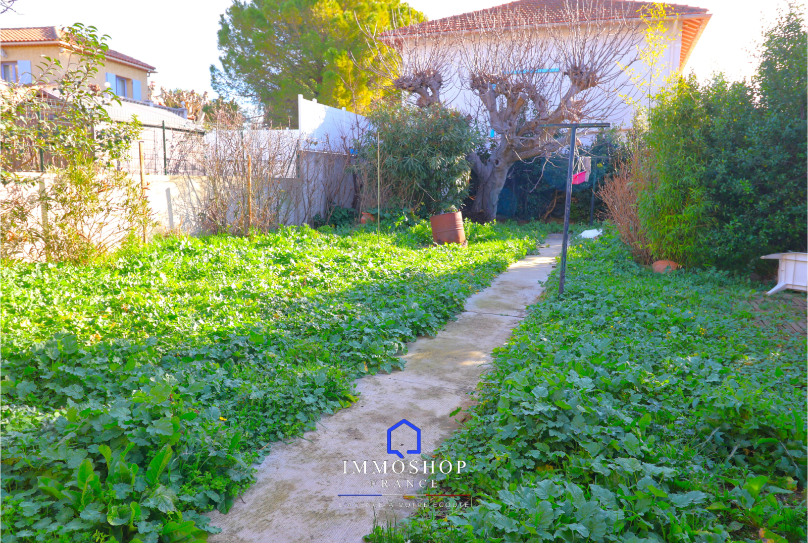 IMMOSHOP FRANCE vous propose à la vente cette maison individuelle traversante de 117 m² habitables sur une parcelle de 481 m². Elle dispose d'un grand garage de 70 m² et de plusieurs places de stationnement à l'intérieur de la propriété.