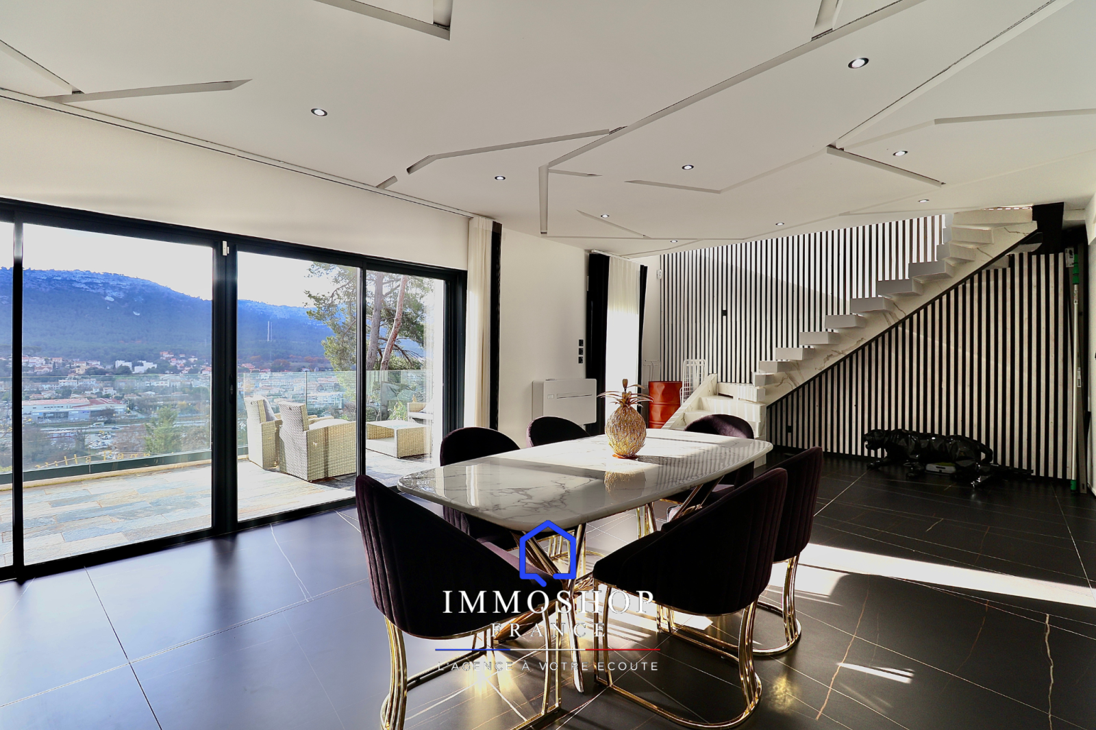 Découvrez cette villa d’environ 250 m2 sur une parcelle de 1800 m2 offrant une vue panoramique sur Marseille.