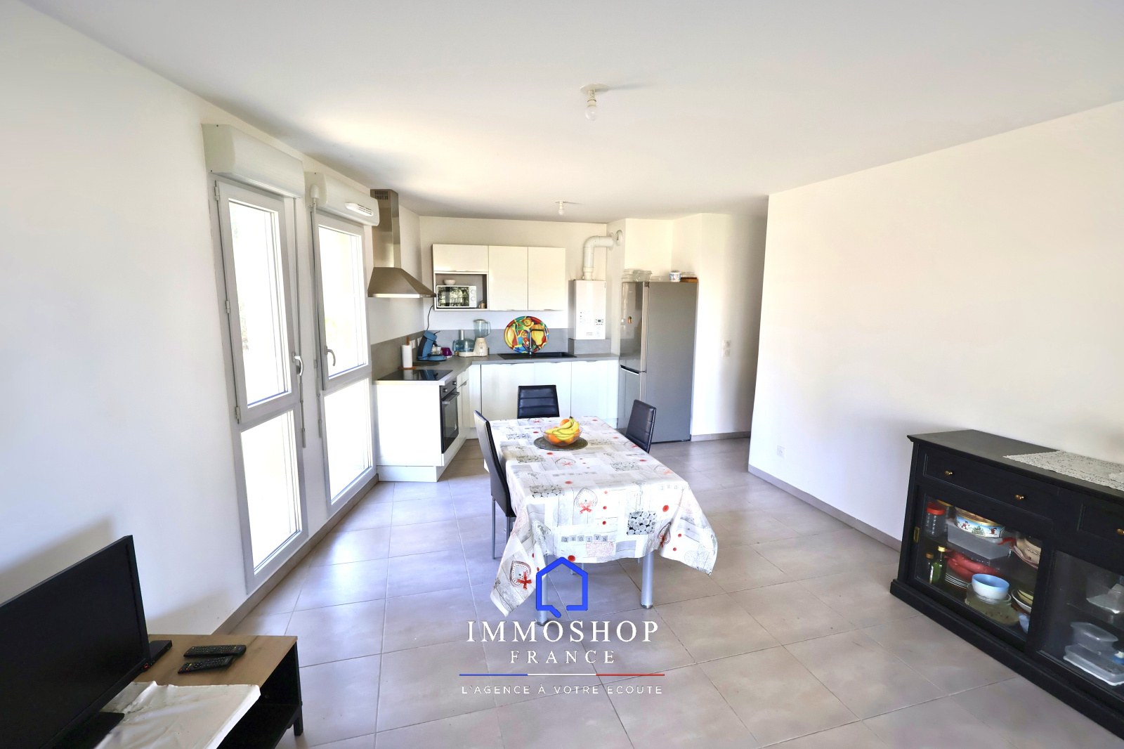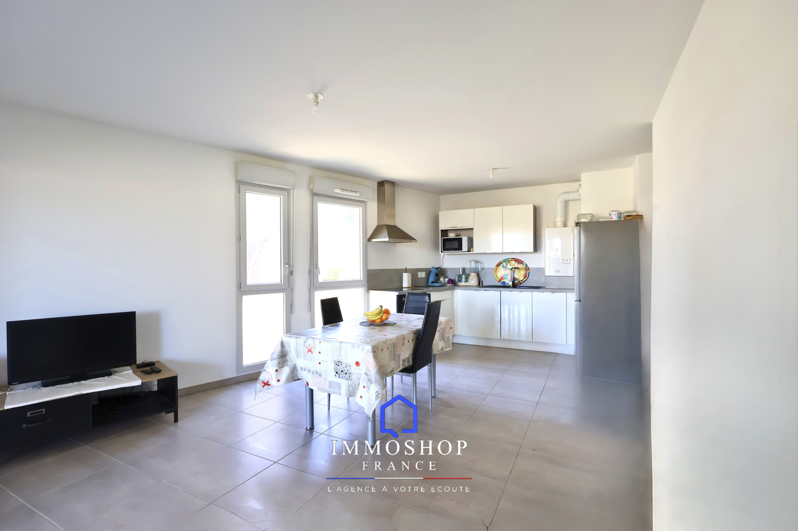 L’appartement se compose d’une spacieuse pièce de vie lumineuse avec cuisine ouverte, donnant accès à une agréable terrasse de 20 m² sans vis-à-vis, idéale pour profiter des beaux jours en toute tranquillité.