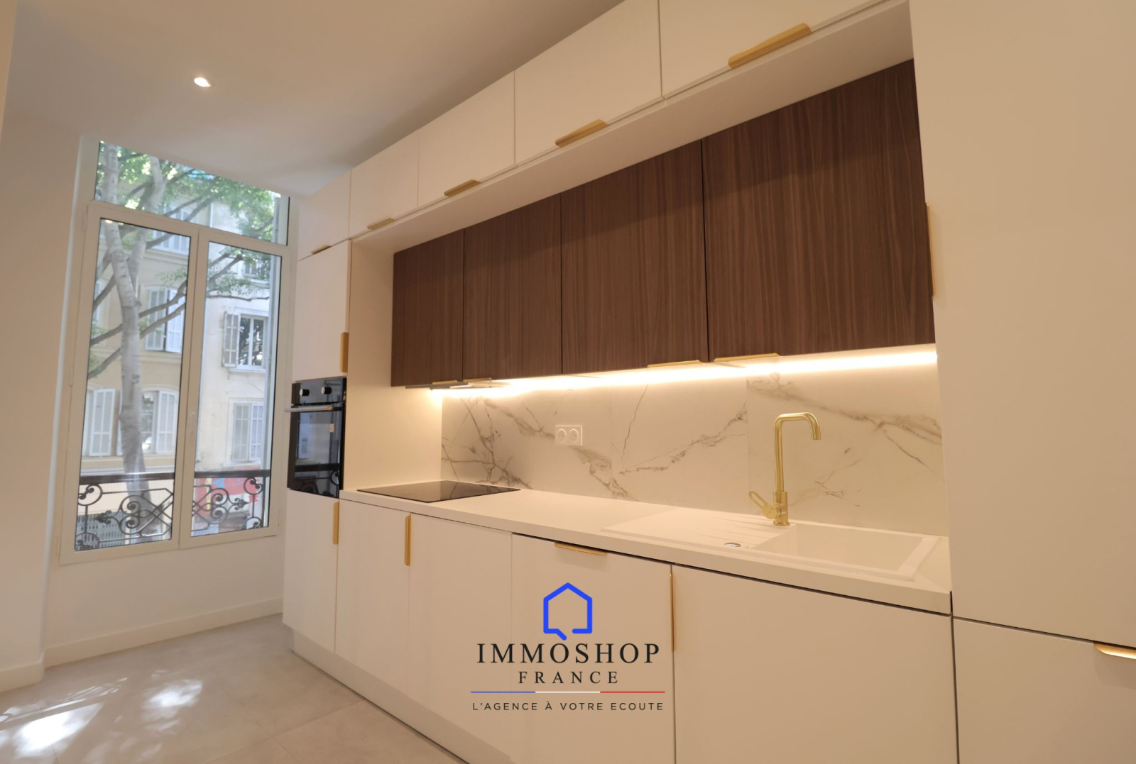 Cet appartement entièrement rénové dispose de grandes hauteurs sous plafond ainsi que plusieurs grandes pièces. Traversant, il se compose d’un séjour et d’une magnifique cuisine équipée semi ouverte sur le salon pour un total de 42m².