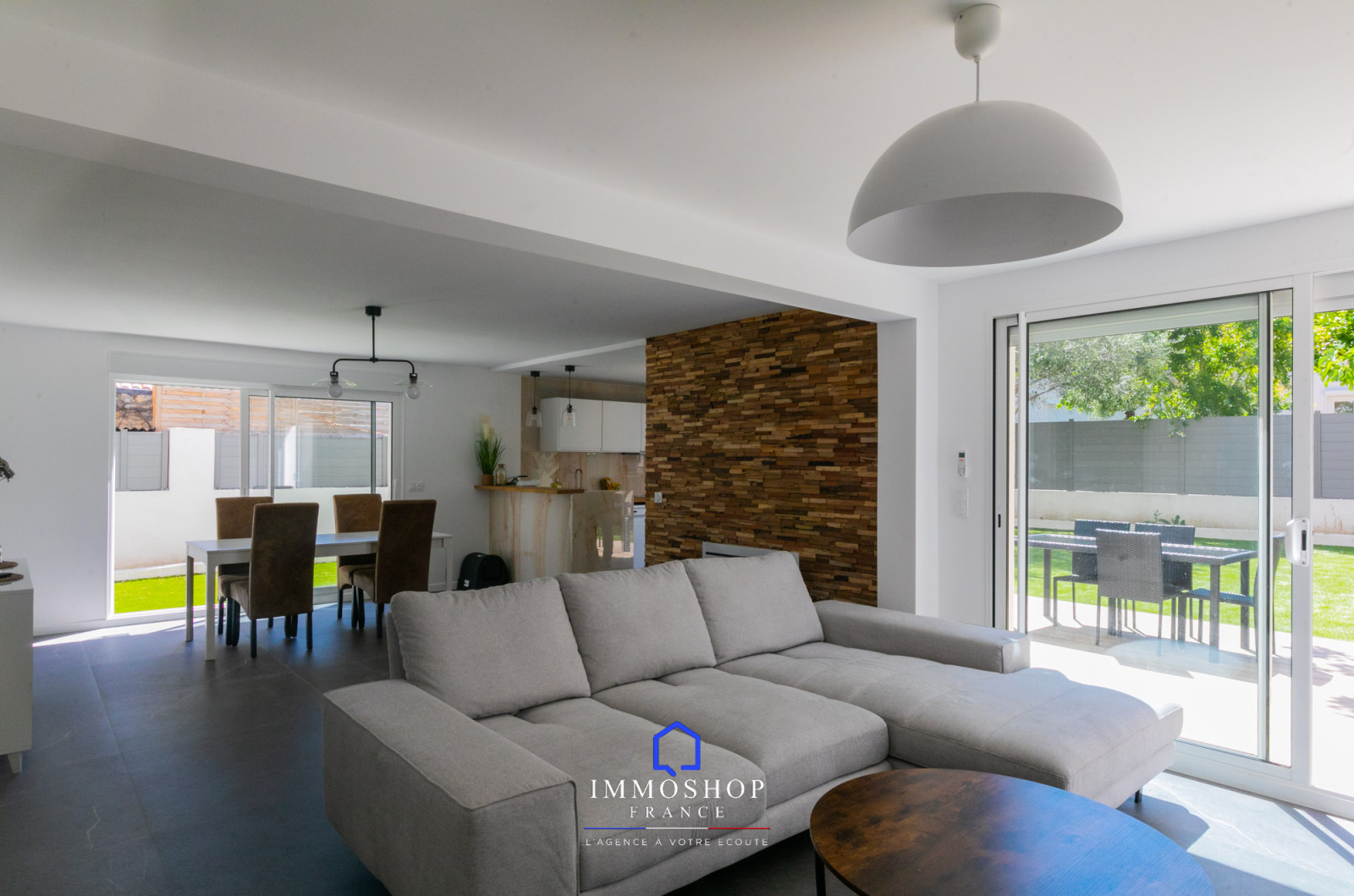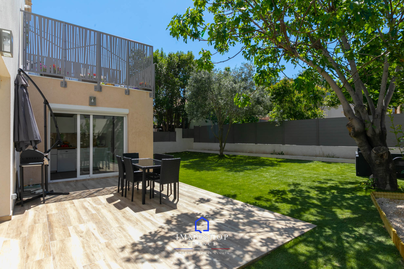 IMMOSHOP FRANCE vous propose en exclusivité à la vente, secteur St Mitre/chemin de château Gombert dans une zone pavillonnaire, ce magnifique et grand T4 en rez-de-jardin de 103m² avec 265 m² d’extérieur paysagé et piscinable dont 20m² de terrasse bétonnée dans une bâtisse entièrement renovée.