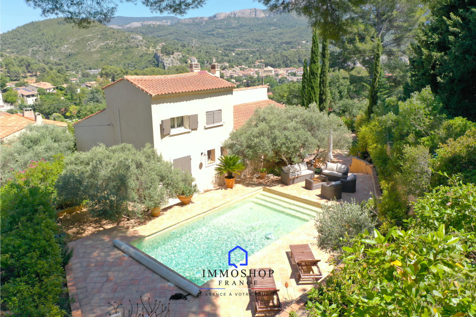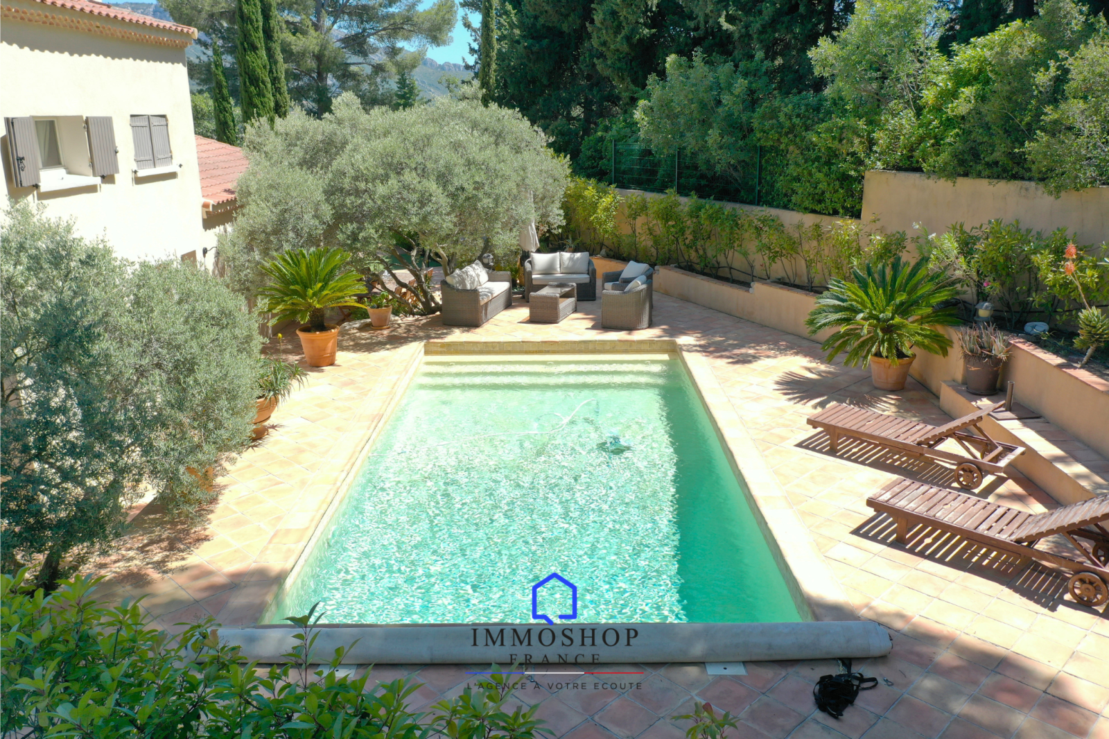 L'agence IMMOSHOP FRANCE vous propose à la vente cette magnifique maison de 150m2 de surface totale sur une parcelle de 680m², avec piscine et dépendance, située à Roquevaire.