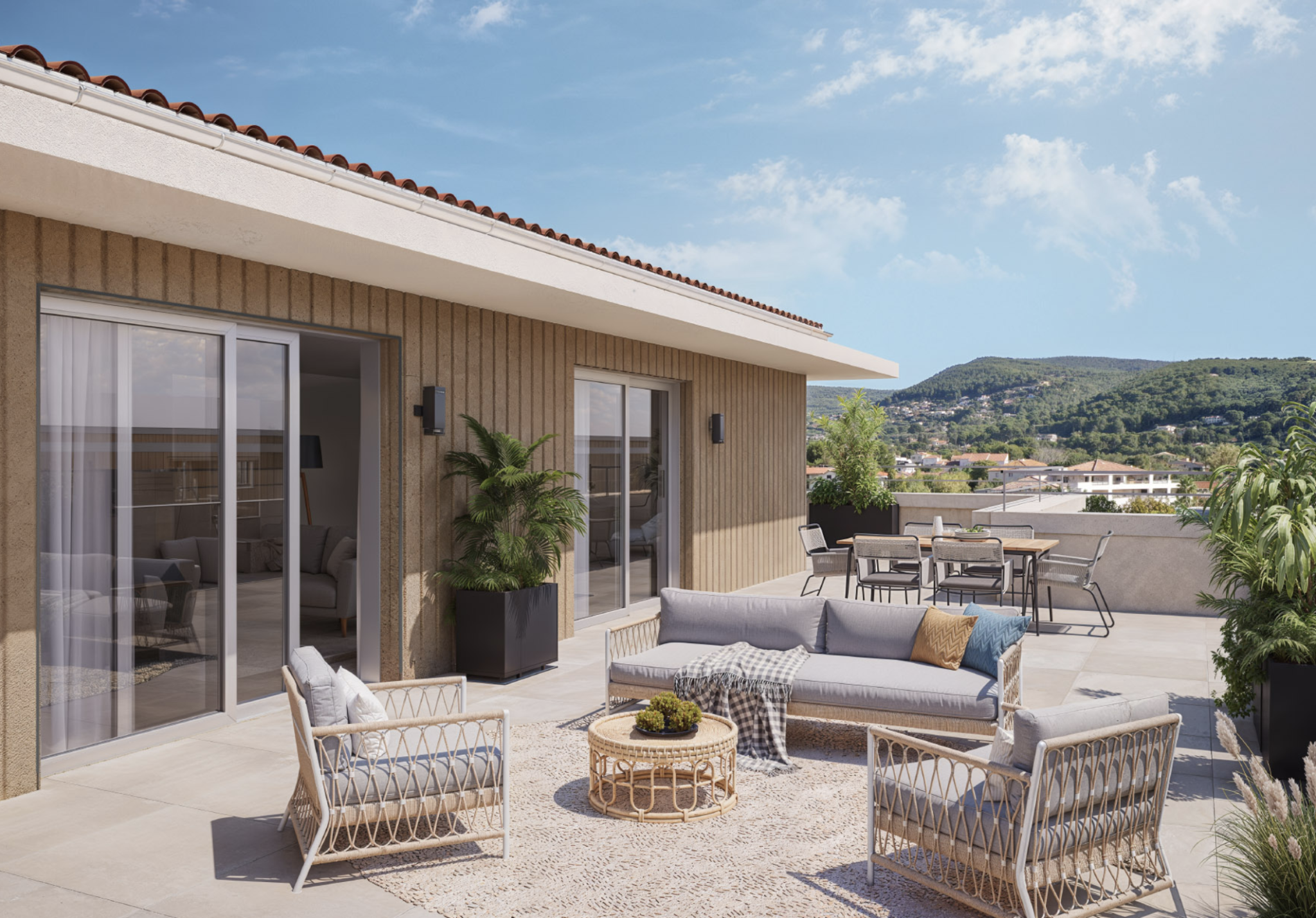 Cet espace s’ouvre directement sur une agréable terrasse de 10 m², parfaite pour profiter des beaux jours.