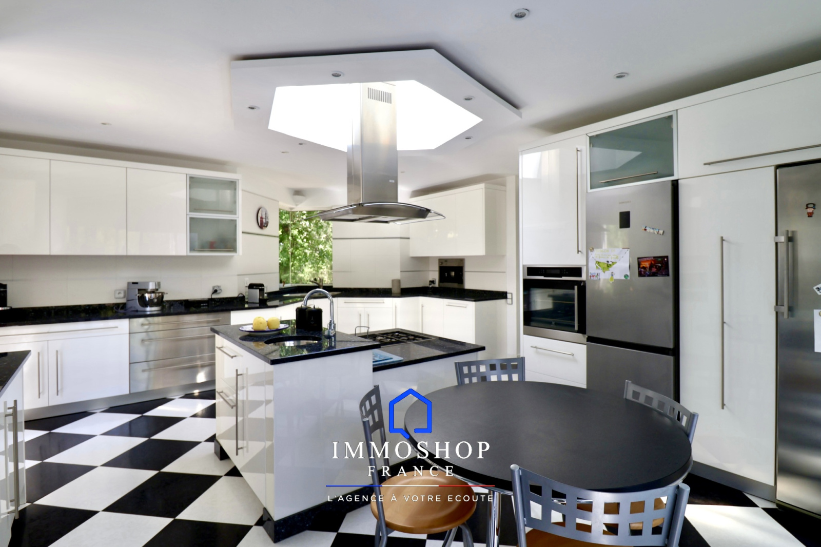 Cette maison d'architecte se compose d'un très beau salon/séjour de 82 m² lumineux avec plafond cathédrale et de belles ouvertures sur l'exterieur, d'une cuisine fermée de 30 m² éclairée par un puits de lumière, de quatre chambres dont une suite parentale de 22m² et de salles d'eau sur ce même niveau.