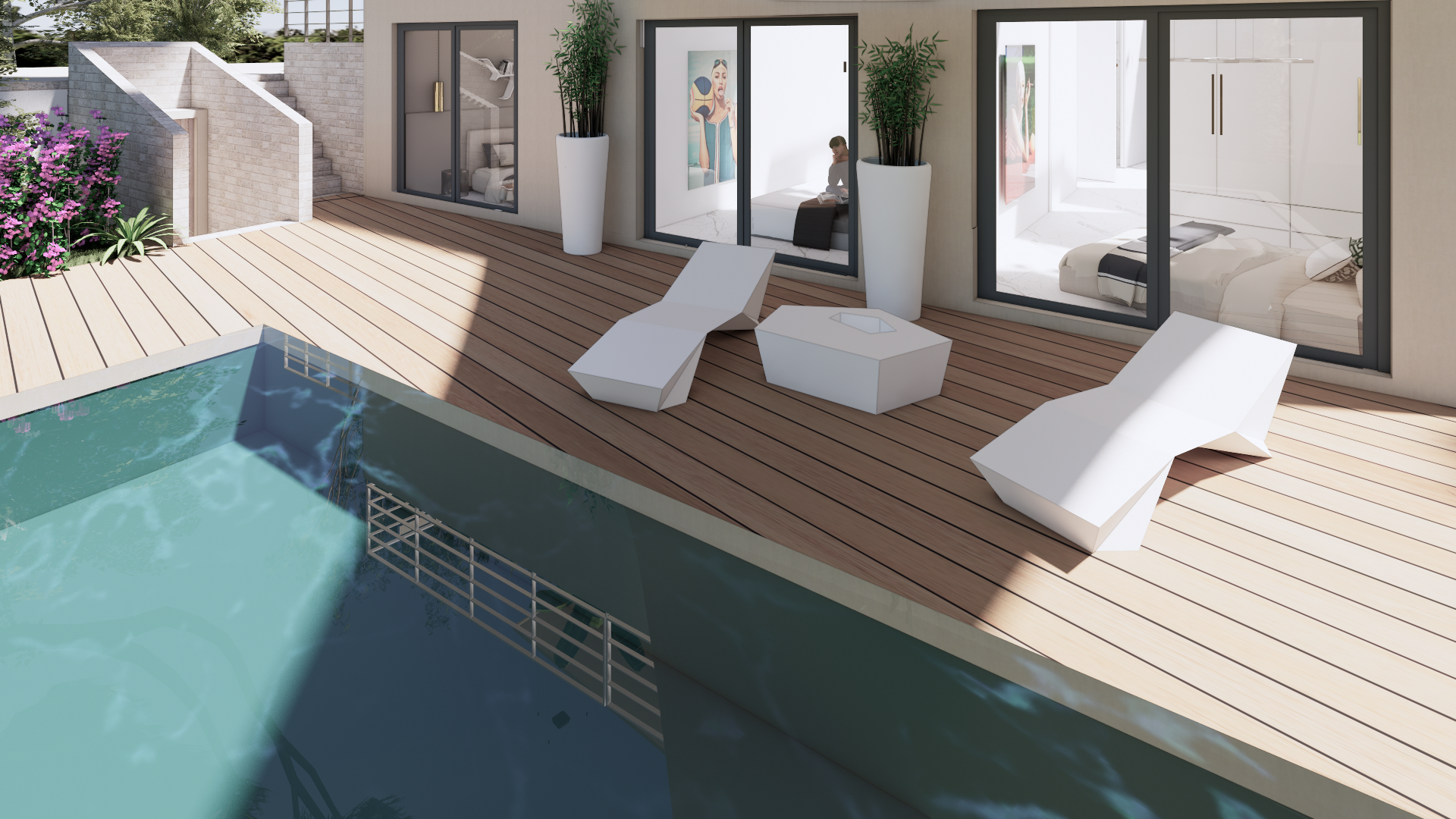 - Possibilité de construction d’une villa contemporaine avec garage, piscine et vue mer au premier étage
